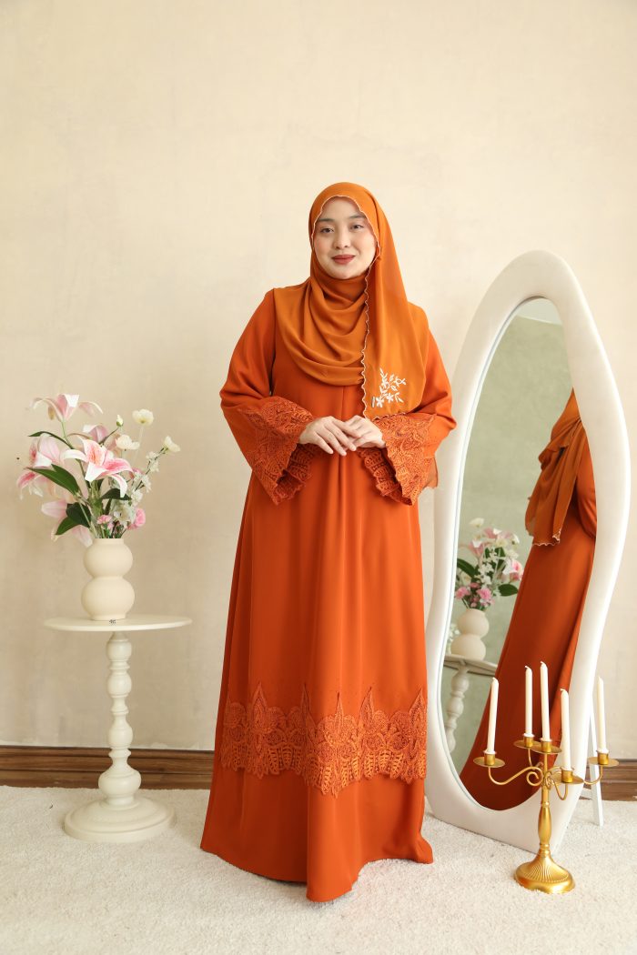 Code : JBH 8850 Name : Abaya Ayeesha (TAGGING ARYNA) Available colour: Lilac Brick Orange Peanut Brown Emerald Navy Blue Black Material: Matte Dubai