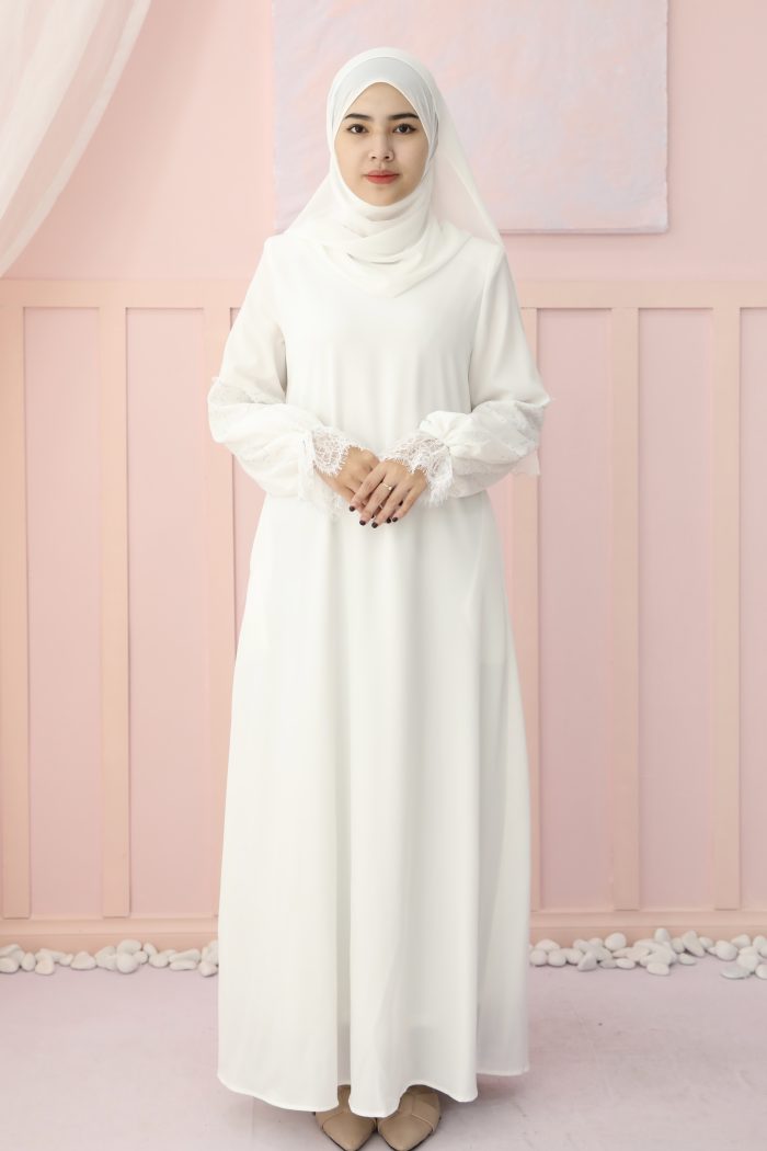 Code : JBH 30351 Name : Abaya Hayfa Colour : Off white Soft Nude Peach Soft Pink Lilac Powder Blue Mint Green Emerald Maroon Purple Mangosteen Navy Blue Black Material : Matte Dubai Embellishment : Embroided Lace Detailing: Zip on the back Cutting : A-Cut