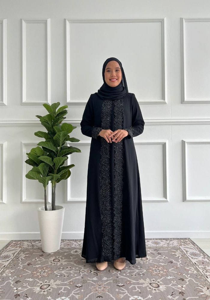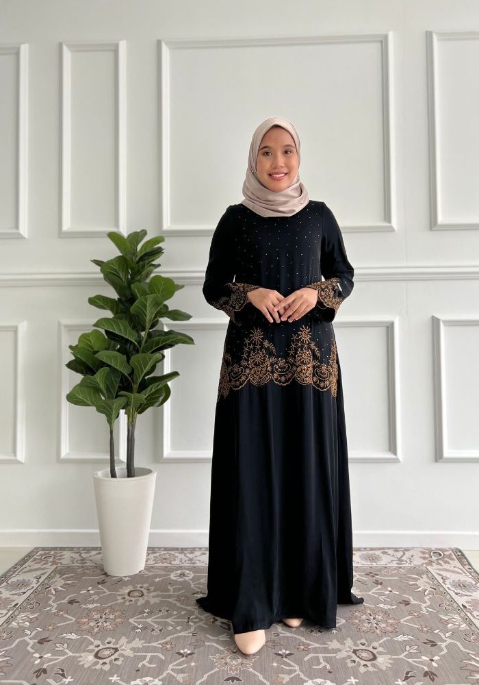 RM79.00Code :JBH 8189 Material : Fursan Cutting : A- cut Jubah Embelishment : Embroidery pattern at bottom with random stone