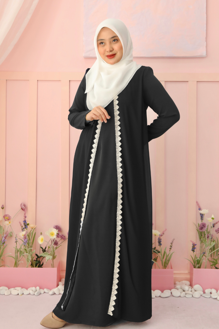 CODE : JBH8812 CUTTING : A-CUT ABAYA MATERIAL : MATTE DUBAI EMBELLISHMENT : PATCH ORGANZA LACE WITH STONE
