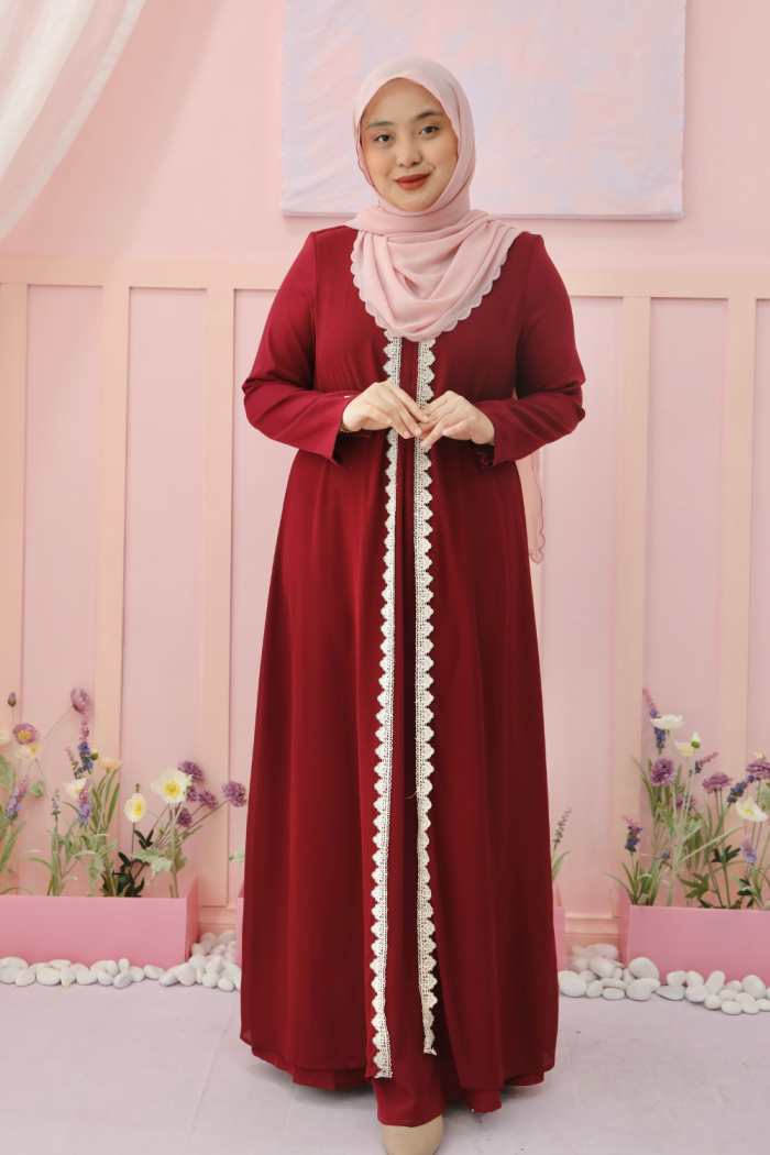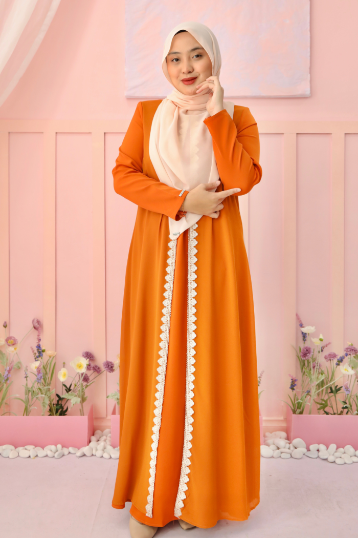 Code : JBH 30355 Name : Abaya Sheqeen Colour Available: Brick orange Maroon Purple Mangosteen Emerald Navy Blue Black Off White Nude Grey Powder Blue Mint Green MATERIAL : MATTE DUBAI