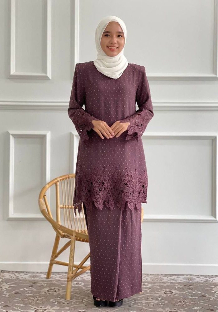 CODE : BJK20168 MATERIAL : TEXTURED CHIFFON CREPE EMBELISHMENT : PATCH CORDED LACE SPECIALITY : KURUNG TRADITIONAL WITH LIPAT SARUNG SKIRT