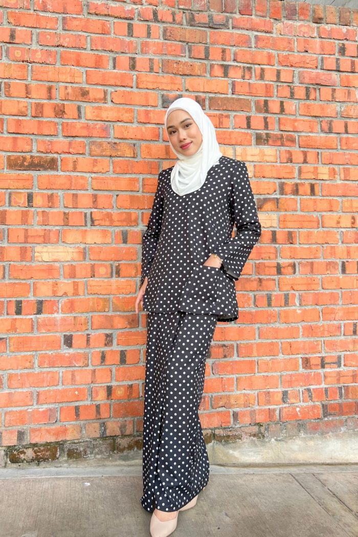 CODE : BJK 20091 CUTTING : KURUNG PAHANG MATERIAL : PREMIUM SOFT CREPE EMBELLISHMENT : PRINTED POLKADOT