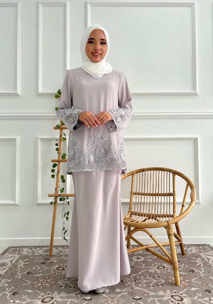 CODE : BJK 20063 CUTTING : KURUNG MODERN MATERIAL : PREMIUM FUSAN WITH LACE EMBELLISHMENT : WUDHUK FRIENDLY