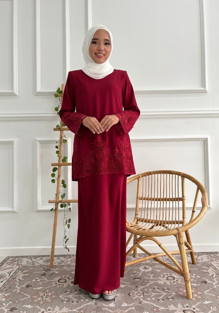 CODE : BJK 20069 CUTTING : KURUNG MODERN, PLEATED SKIRT MATERIAL : PREMIUM FUSAN EMBELLISHMENT : EMBROIDERY LACE WITH PLEATED SKIRT